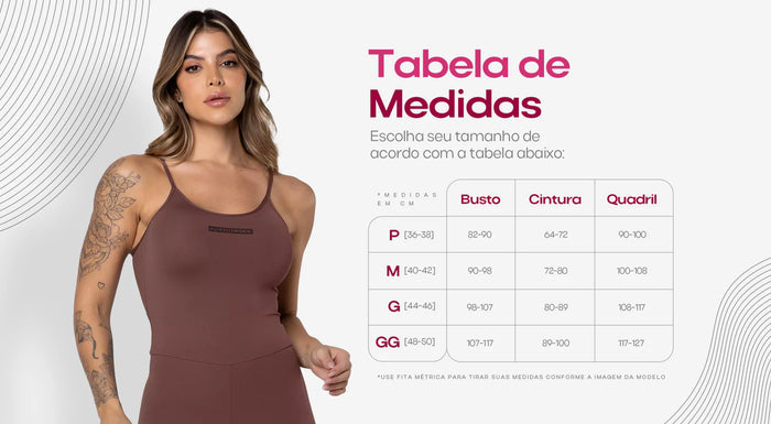 | Tamanho | Busto | Cintura | Quadril |